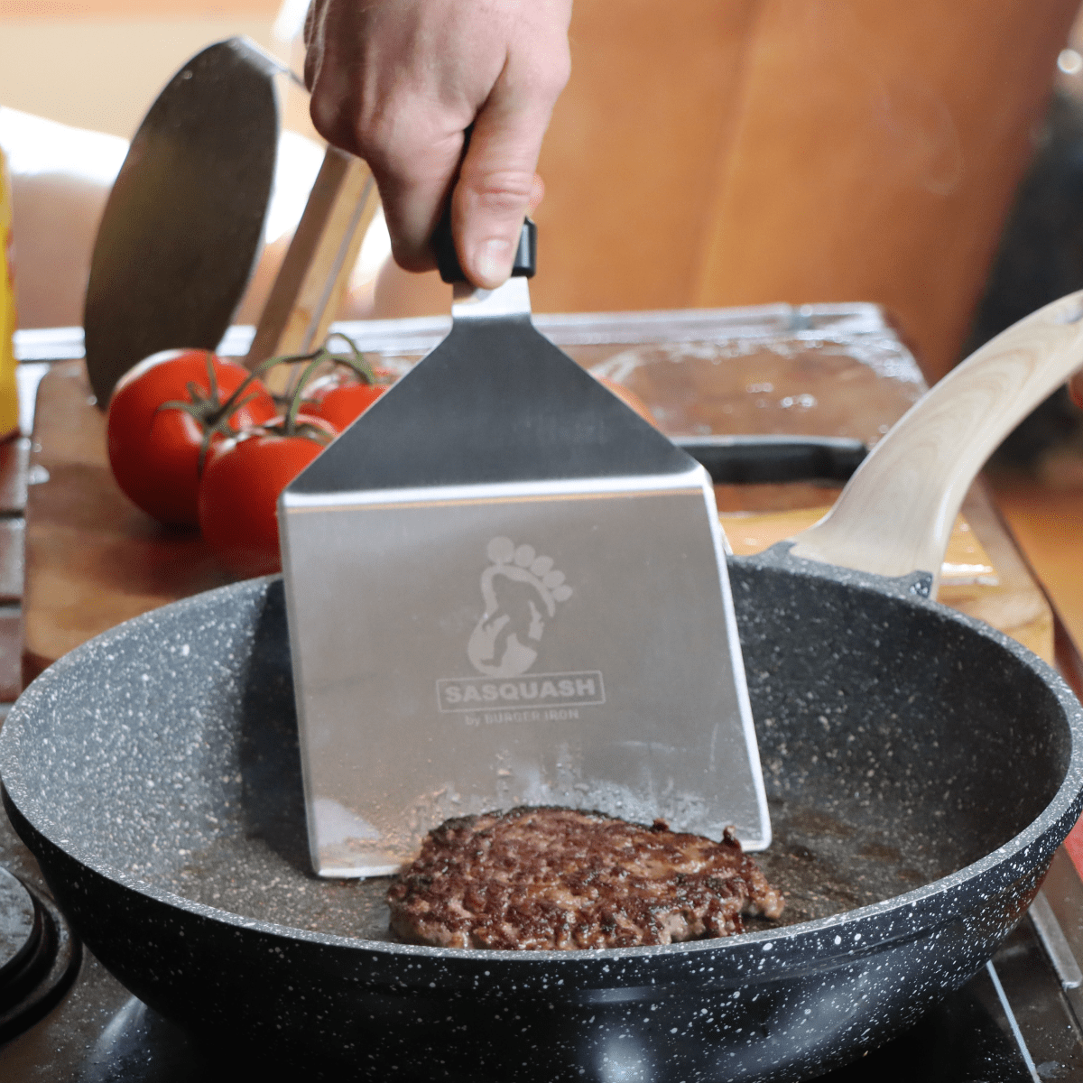 I used to grill out 1/4 lb. burgers for the family. I thought I would mix things up and try some smash burgers. I tried it with a big spatula, but the was flimsy. I decided to give this a try and it works great. I originally was going to get a cast iron press, but wanted one with a flat bottom, so I came across this one. This works great in smashing up the burgers. It seems strong and well made and it's easy to clean up.